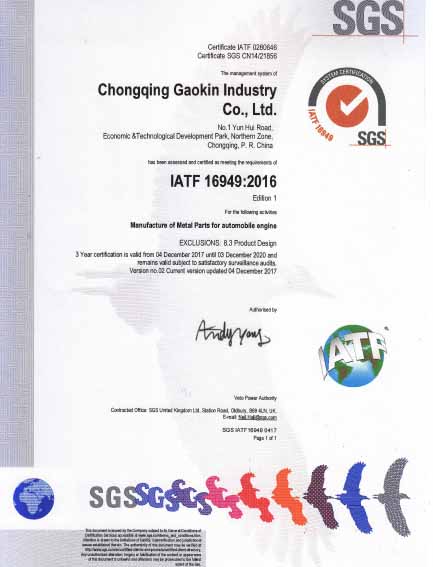 2016年12月開始策劃ISO9001:2015、IATF16949:2016新版認證、轉(zhuǎn)證認證工作,2017年4月邀請BSI(英標認證技術(shù)培訓(xùn)公司)到我司對ISO9001:2015、IATF16949:2016標準進行培訓(xùn),同時進行了內(nèi)審員培訓(xùn),公司領(lǐng)導(dǎo)高度重視,全公司各副總、部長、經(jīng)理、主管、班組長、質(zhì)量和技術(shù)工程師參加了培訓(xùn),有35人獲得內(nèi)審員資格證;培訓(xùn)后由各部門負責人新自修訂及新增體系文件,建立了一套符合國際質(zhì)量標準和汽車質(zhì)量管理體系,通過對全員的宣傳、培訓(xùn),于2017年6月正式運行新版體系,2017年9月SGS認證公司審核專員蒞臨我司,在公司體系專員的陪同下、各部門負責人、全體員工的積極配合下,外審專員對我司質(zhì)量管理體系進行了細致嚴謹?shù)膶徍耍琁SO9001:2015、IATF16949:2016新版和轉(zhuǎn)證的認證順利通過,同時也是對我司質(zhì)量管理工作的一種肯定,進一步證明了我公司產(chǎn)品的高質(zhì)量水平。